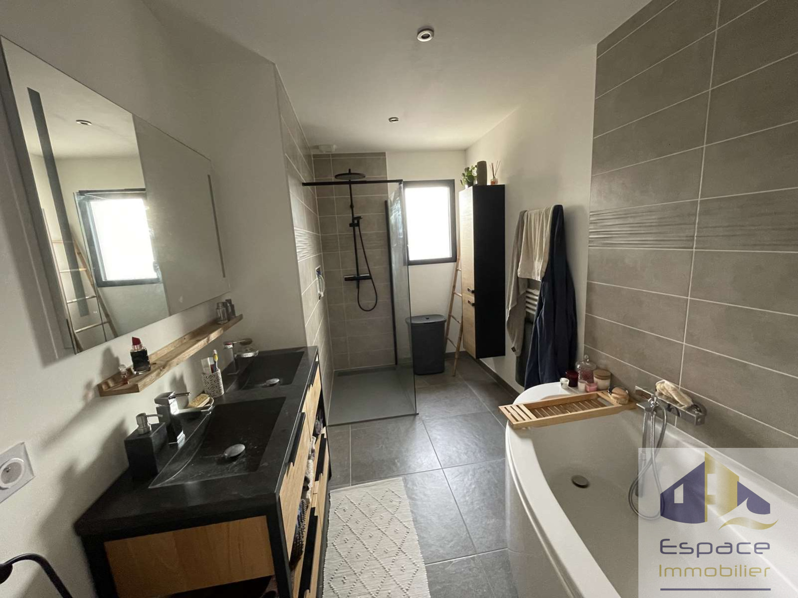 Dès l’entrée, vous serez séduit par un vaste séjour baigné de lumière, ouvert sur une cuisine moderne entièrement équipée, parfaite pour recevoir famille et amis. La partie nuit se compose de trois chambres confortables, dont une suite parentale avec un spacieux dressing, idéale pour optimiser votre rangement. La grande salle de bain propose à la fois une douche et une baignoire, pour répondre à toutes vos envies de détente et de praticité. Un garage de 20 m² complète ce bien, offrant un espace de stockage ou de stationnement supplémentaire.