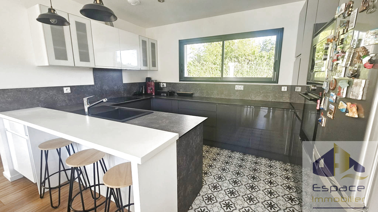 Erigée en 2021 sur une parcelle hors lotissement de 746m², cette construction vous séduira dans un premier temps pour son environnement calme et arboré. Ensuite, elle vous séduira par ses volumes et ses prestations.