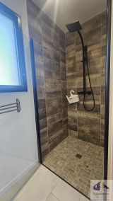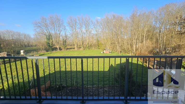 A l'étage, deux chambres de 14.30m² avec chacune leur salle d'eau privative et un palier avec possibilité de faire un coin bureau. Par ce palier, vous aurez accès à une terrasse offrant une vue dégagée et arborée.