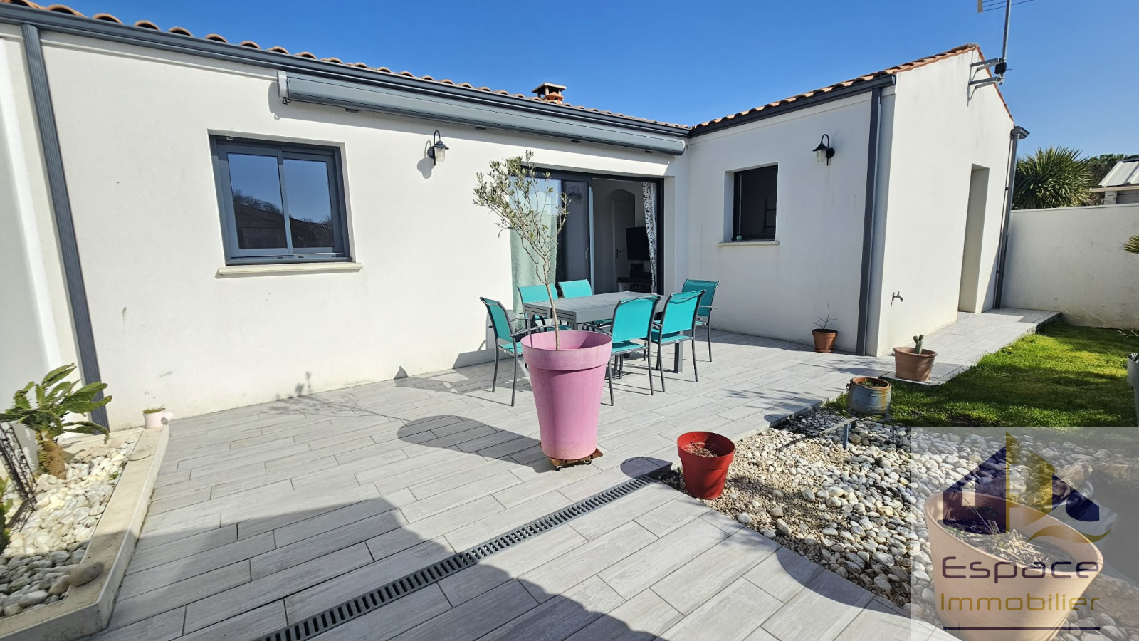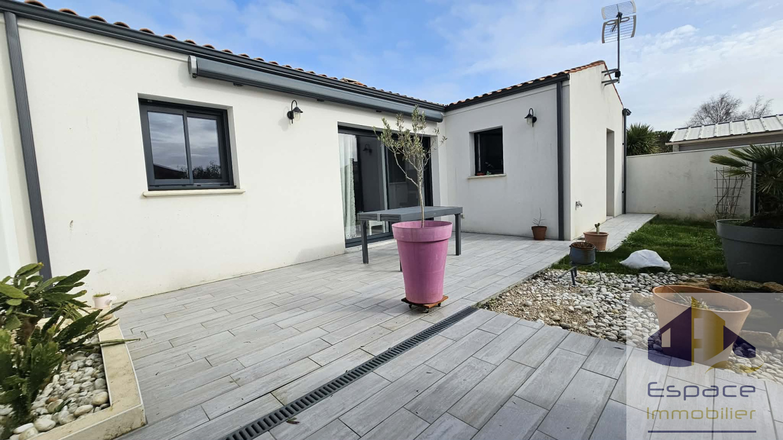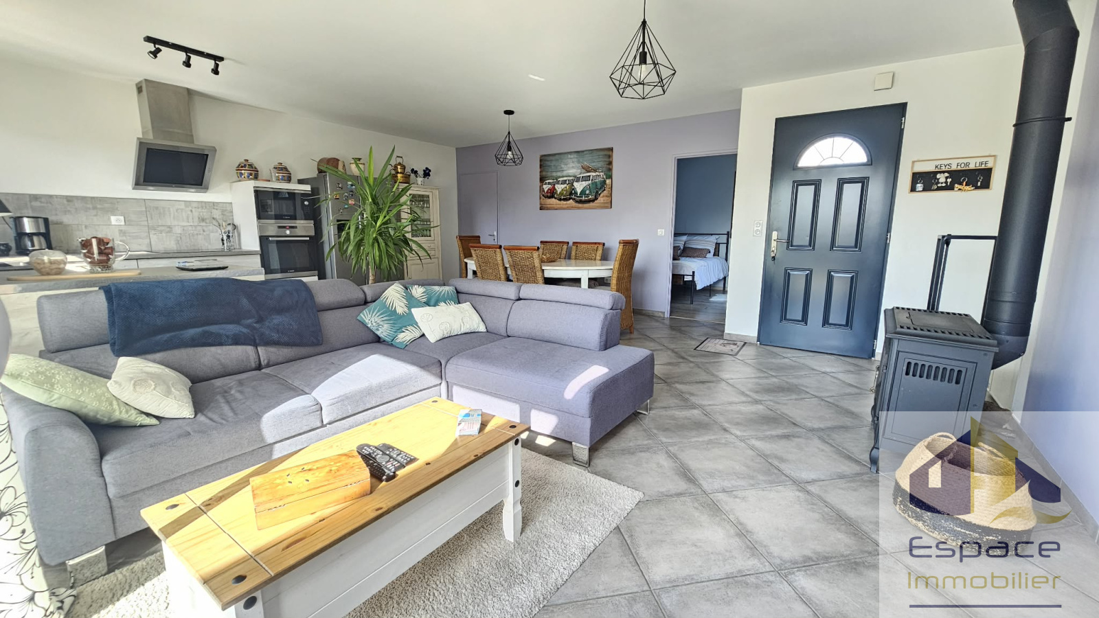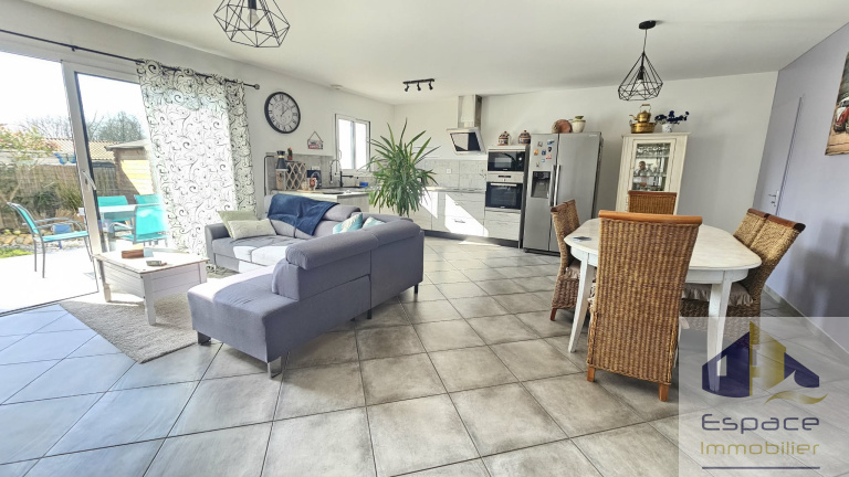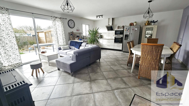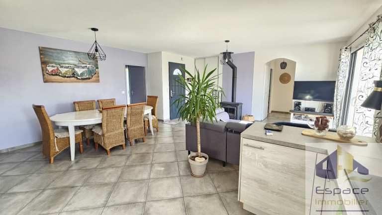 Construite en 2016 sur une parcelle de 208m², cette maison de 82m², possède un espace de vie plein sud de 37 m² incluant une cuisine aménagée et équipée et un cellier toujours pratique. La pompe a chaleur a été remplcée en 2023 et un insert à bois vient la suppléer.