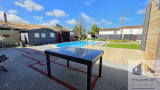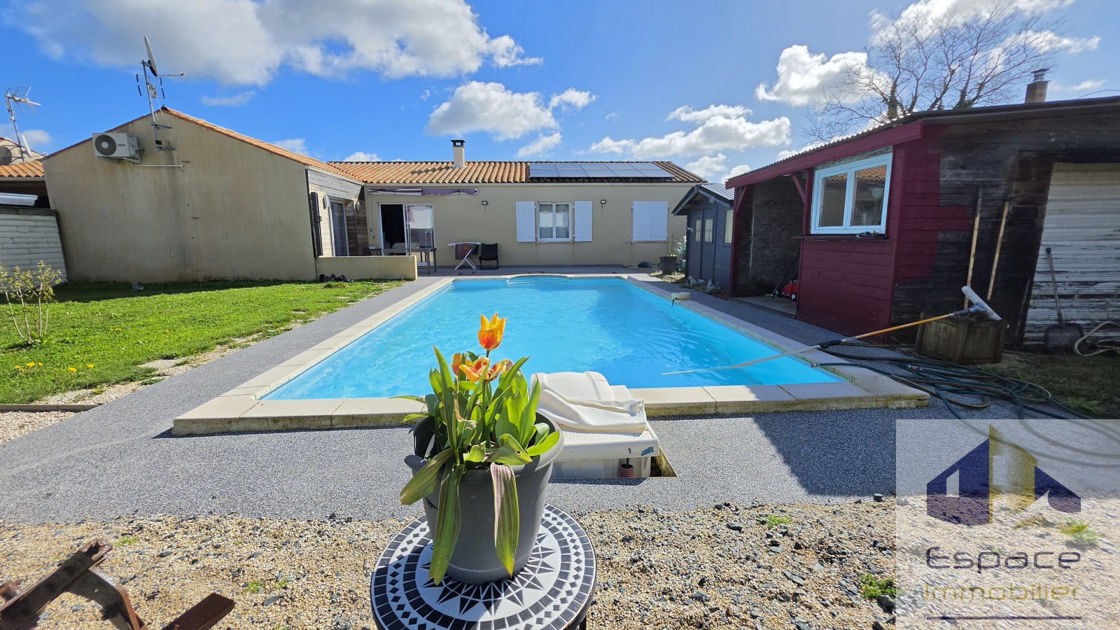 Le jardin lui, est également très agréable. Revêtement en Gomme facile pour l'entretien, une piscine chauffée avec alarme et sa cuisine d'été non équipée et un terrain de pétanque vous feront passer de belles journée en famille ou entre amis.