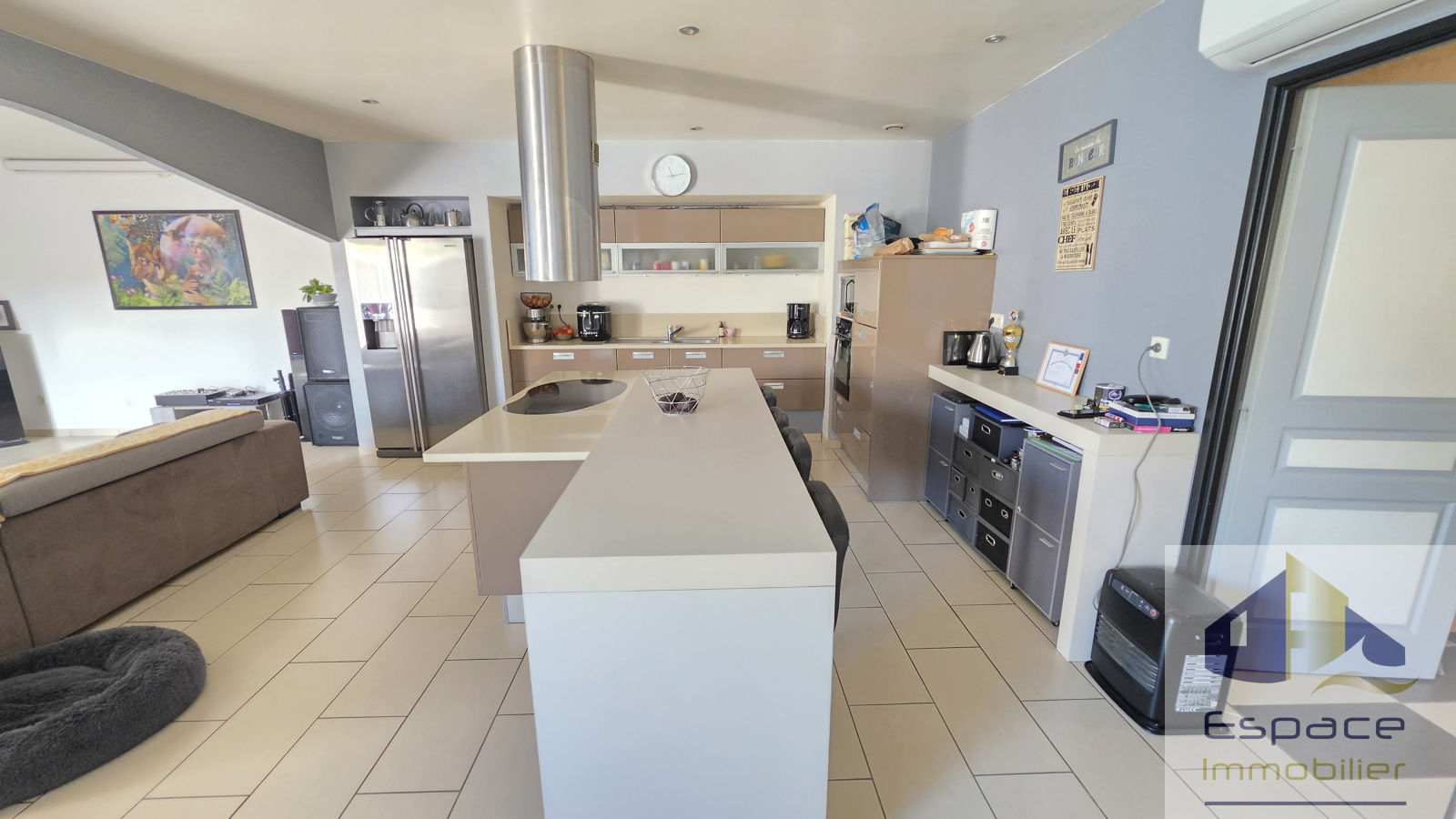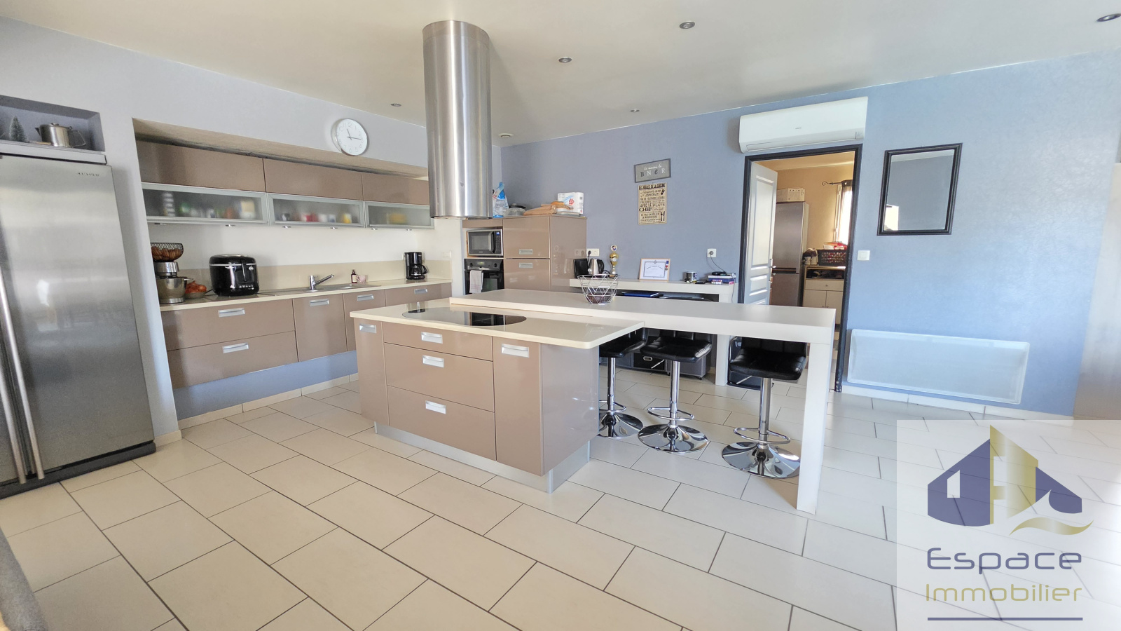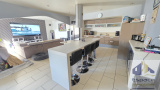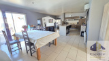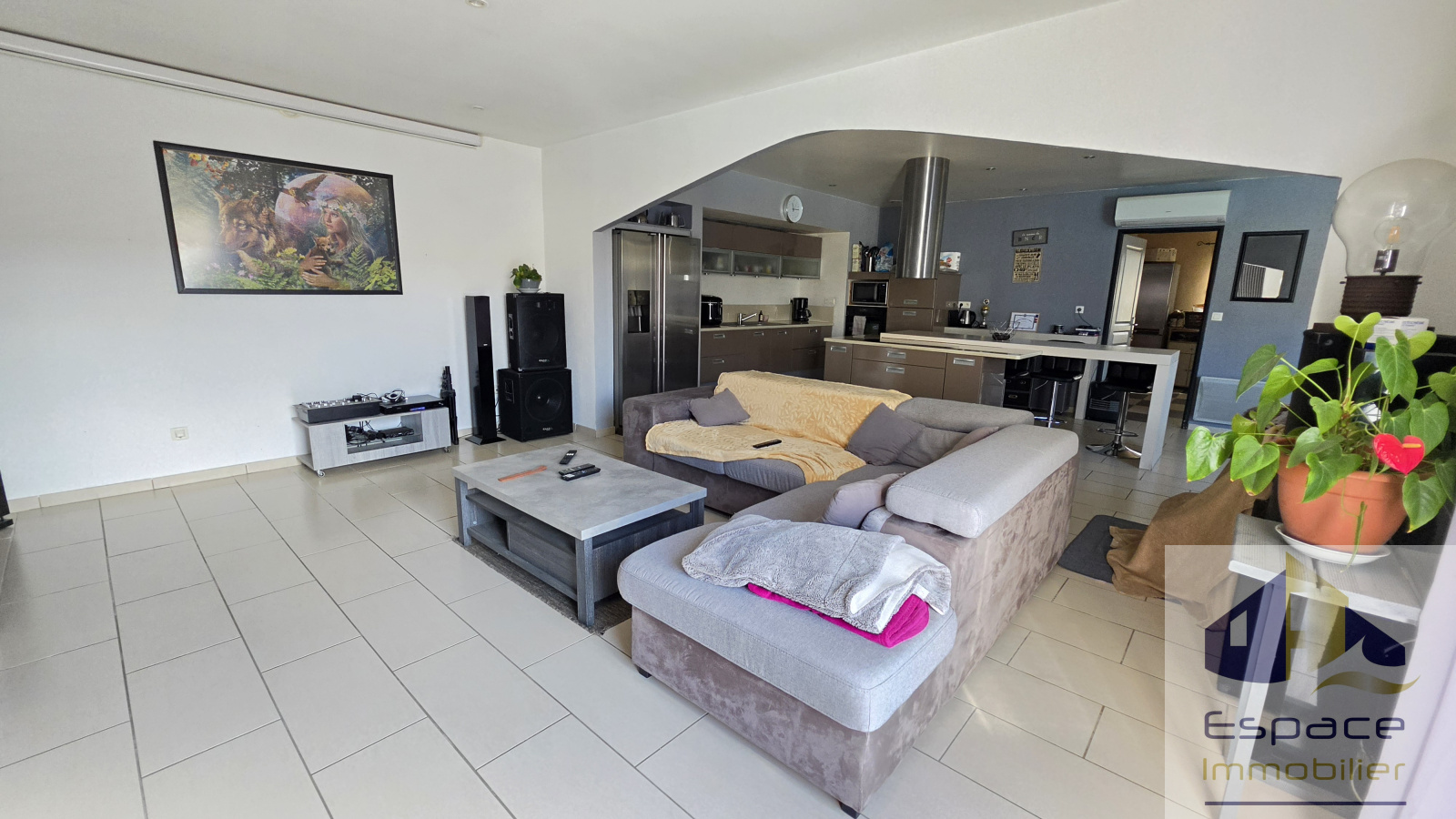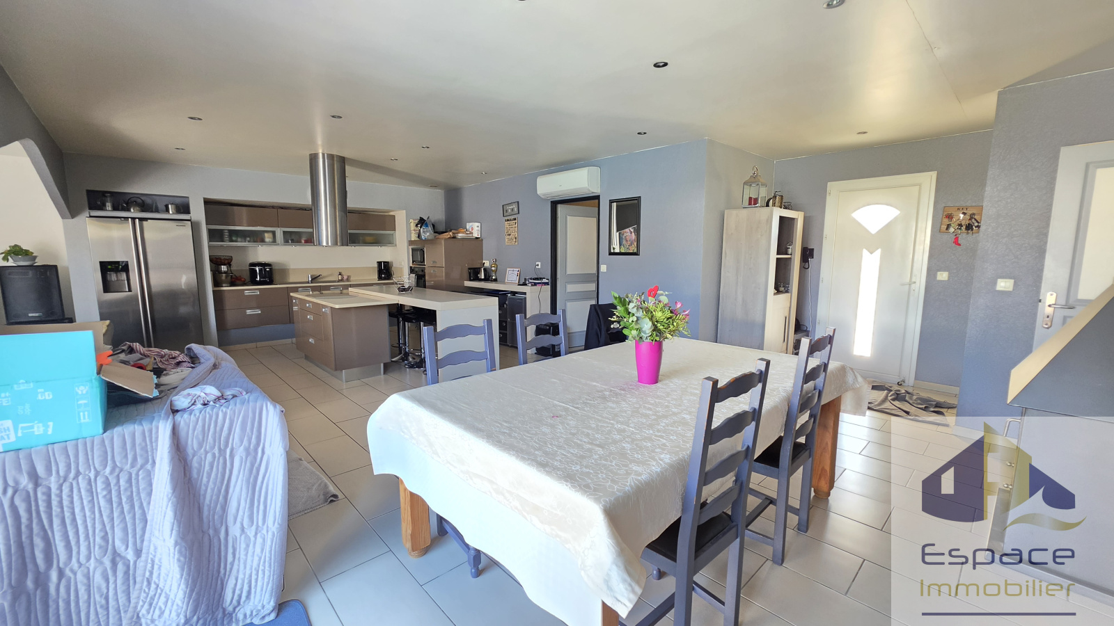 Ses 140m² habitables offrent pour commencer un espace de vie de 60m² avec cuisine équipée et rétroprojecteur dans le salon. Toujours très pratique, un cellier vient suppléer l'espace cuisine. La maison est équipée d'une clim reversible et d'un poêle à bois pour le chauffage. Un ballon thermodynamique et un adoucisseur d'eau sont présents également, tout en garantissant le moins de consommations possibles avec les panneaux photovoltaïques installés en 2022.