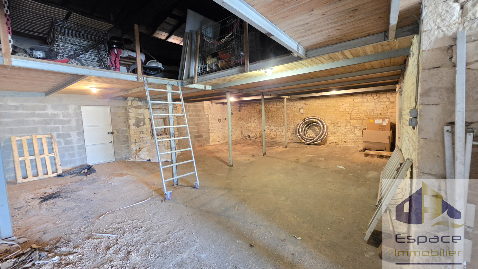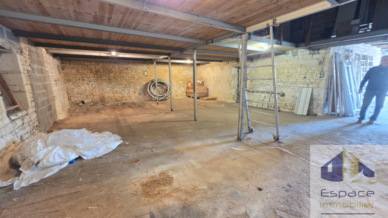 Le gros plus, idéal artisan, 120m² de garage avec une hauteur maximale à 6 mètres.