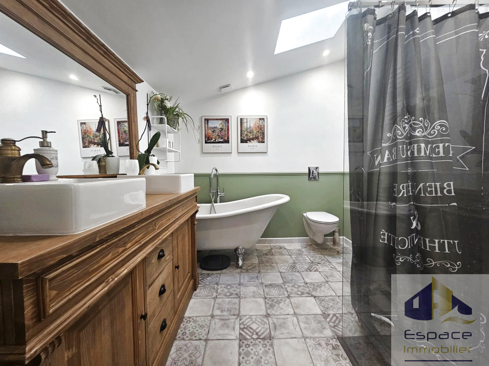 EN EXCLUSIVITE !! Venez découvrir cette charmante maison de fin 1800 entièrement rénovée avec gout située à Saint Médard d'Aunis, village de la CDA de La Rochelle. Tout a été refait en 2021, du sol au plafond dans cette maison érigée sur 422m². La charpente a été refaite, les sols avec son parquet flottant avec couche de massif et carrelage imitation carreaux de ciment, l'isolation par le sol, l?intérieur et les combles avec injection anti humidité, jusqu?à la centrale de traitement de l'air ainsi qu'un repoussoir d'humidité qui permettent, tous ensemble, d'avoir une maison saine. Un plancher hourdis a également été installé. Tout a été fait par des professionnels et encore sous décennales ! Au rez de chaussée, l' espace de vie de presque 55 m² exposé plein sud est accompagné d'une salle d'eau avec WC et d'un cellier toujours très pratique. A l'étage, optimisation parfaite avec un grand dégagement avec du rangement, trois chambres de belle taille avec du rangement également et une salle de bains avec WC. Coté jardin, un forage peut être exploité, la gaine est passée pour électrifier le portail, la façade a été repeinte et les possibilités de stationner un camping car est possible. Un garage, qui pourrait mériter une seconde jeunesse mais qui accueille sans problème voiture ou stockage est présent sur la parcelle également, il ne reste plus qu'à trouver ses futurs occupants.