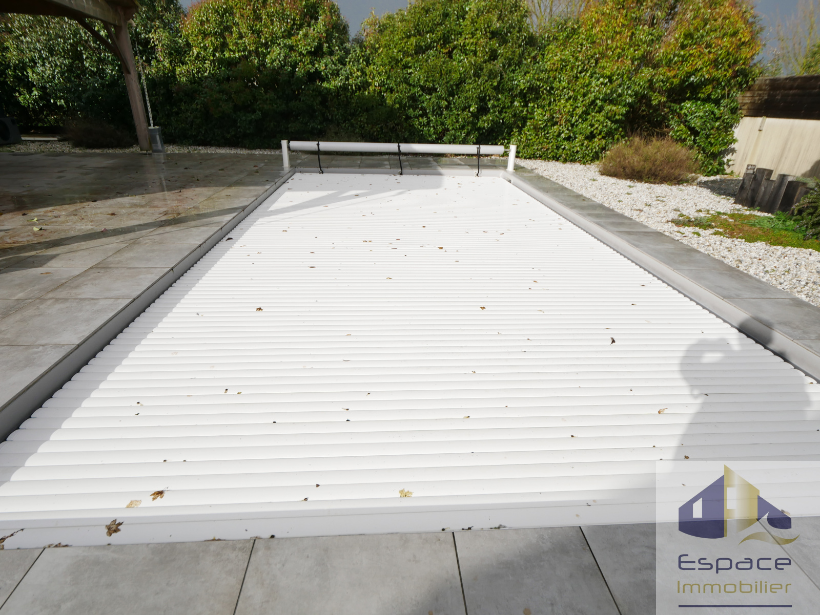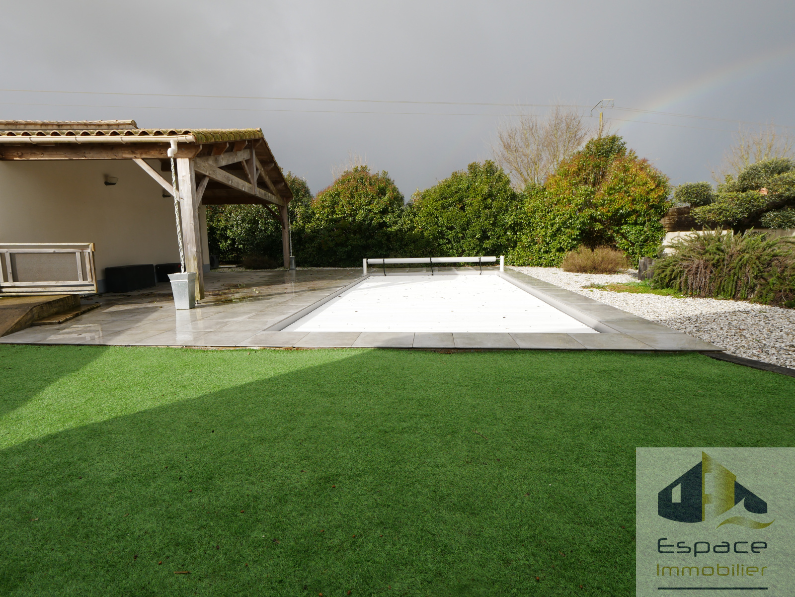 Angliers. Plain-pied de 142 m² de qualité. Séjour de 52m², cuisine aménagée et équipée de 12 m². 4 chambres. Grande salle de bains Piscine chauffée enterrée 8 par 4 mètres avec volet roulant électrique. Terrasse couverte attenante à la piscine. Parcelle de 950 m². Chauffage au sol par géothermie. Poêle à bois rotatif. Cellier. Bénéficiez d’une belle allée goudronnée, d’une baie vitrée à galandage, d’un visiophone, d’un garage double, d’une cave à vin. Belle opportunité pour cette propriété qualitative.