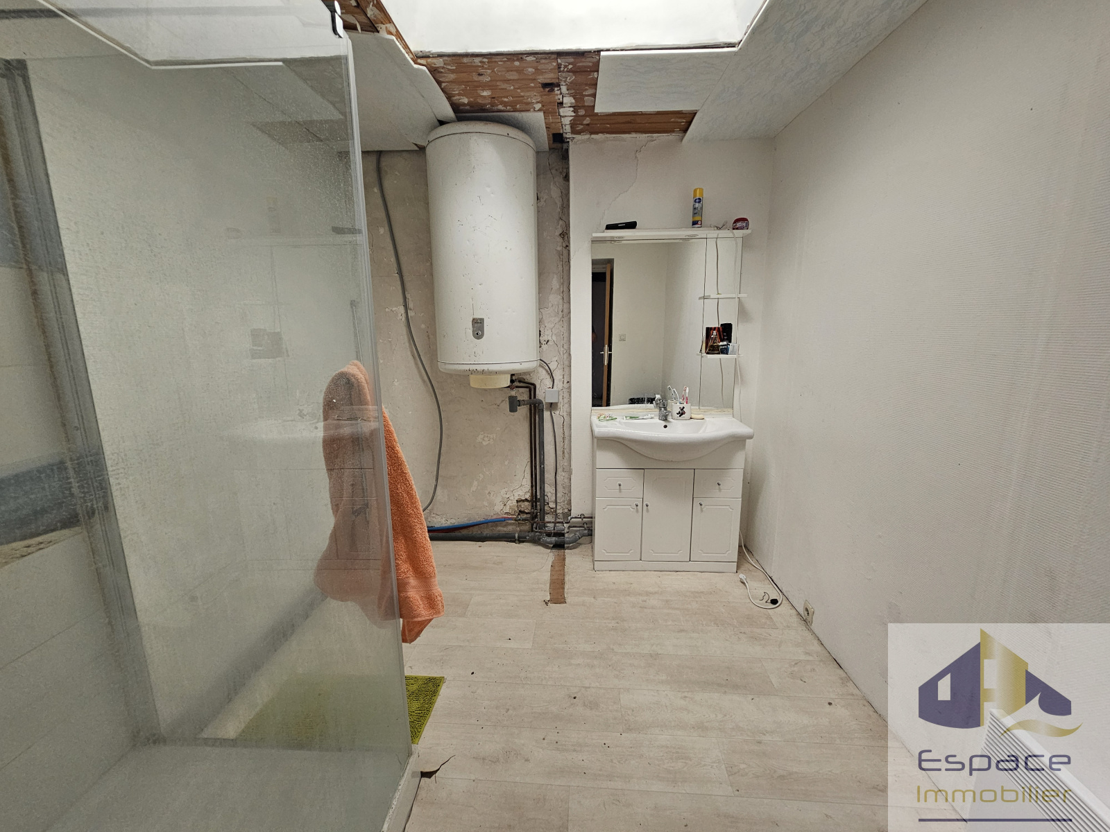 A l'étage, une redistribution serait nécéssaire. Un grand palier de 15m² dessert trois chambres de 9.60, 7.25 et 7.50 et une salle d'eau. L'isolation des combles et le changement de VMC amélioreraient considérablement le DPE. Elle est reliée au tout à l'égout et sa charpente et toiture sont en excellent état.