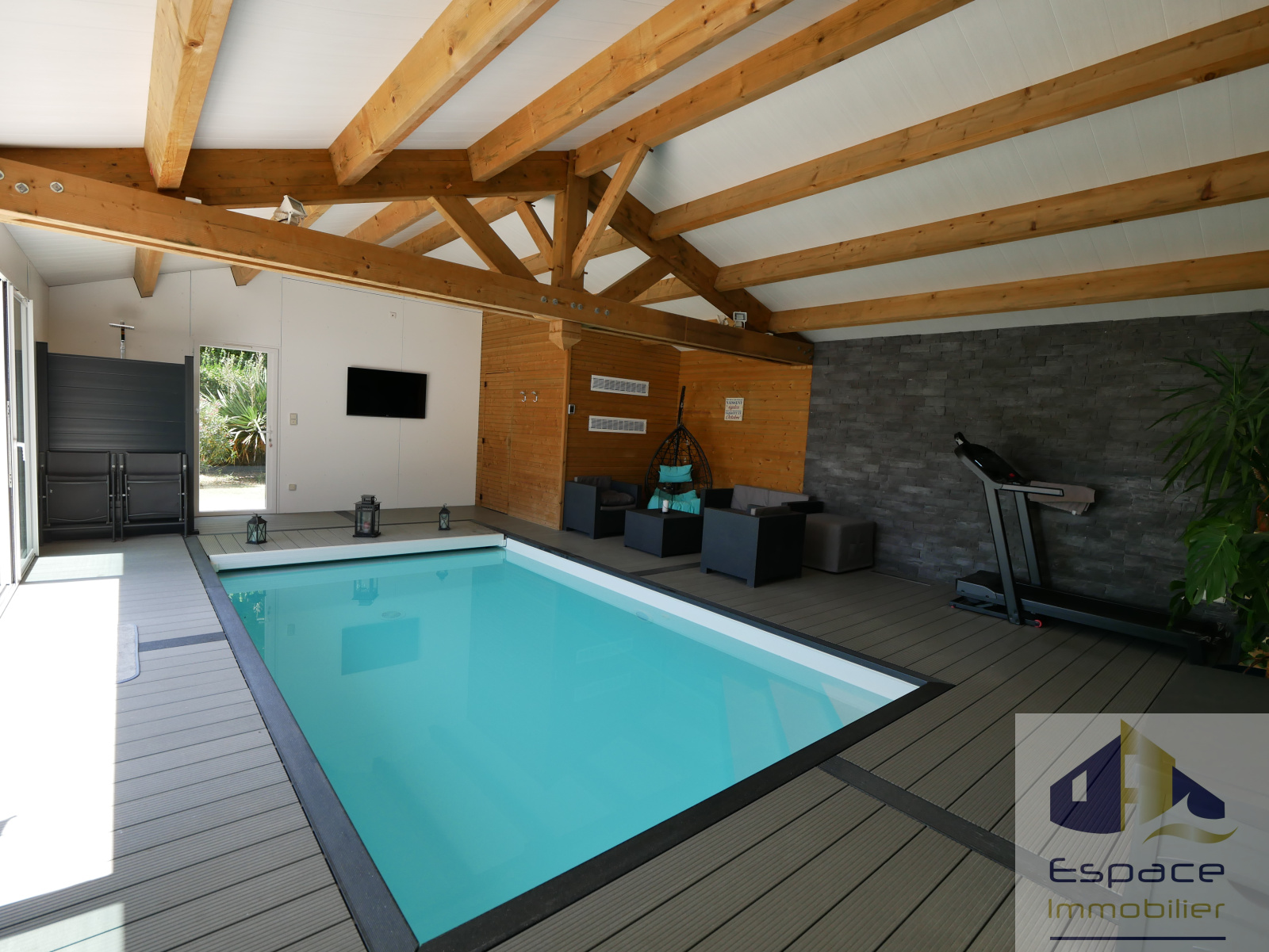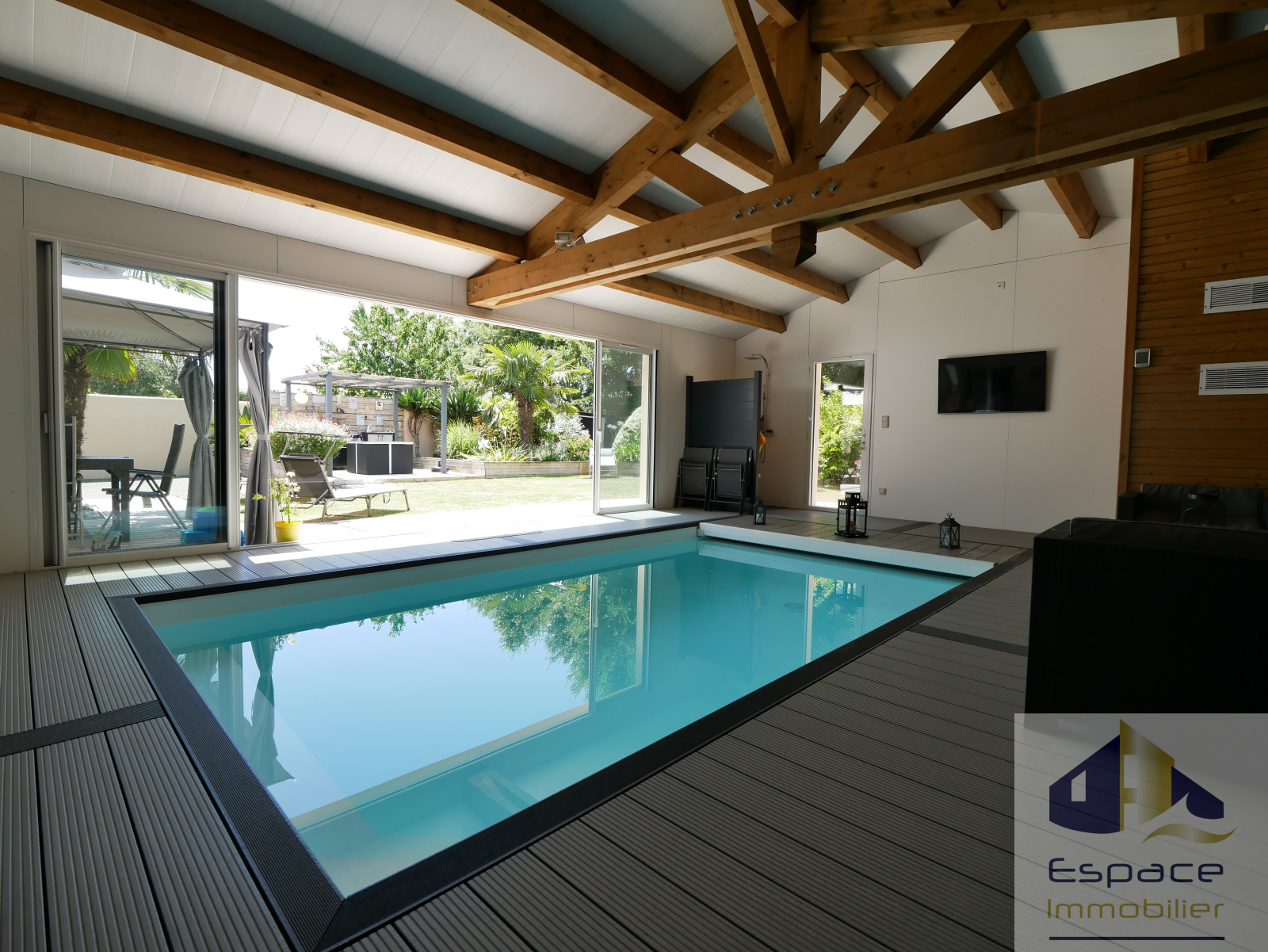Atout rare : une extension SOLIBOIS d'environ 65m² portant la surface à 177m² abrite une piscine couverte de 6x3m au brome et une douche, accessible directement depuis le salon et le jardin grâce à de grandes baies vitrées pour en profiter toute l'année !