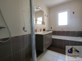Elle se compose d'une belle pièce de vie lumineuse avec cuisine ouverte entièrement équipée, trois chambres dont une suite parentale (salle d'eau et dressing), une salle de bains (baignoire et douche) indépendante, une buanderie pratique et un garage traversant.