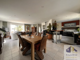 À l’intérieur, découvrez une entrée accueillante, une vaste pièce de vie composée d'un salon, d'une salle à manger et d'une cuisine haute gamme totalement aménagée et équipée avec un cellier attenant. Cette espace de vie est baignée dans la lumière grâce aus grandes baies vitrées et à sa triple exposition Un esprit chaleureux grâce à son poêle à granulés moderne. Une véranda de 20m2 prolonge l’espace de vie, idéale pour profiter du jardin toute l’année.