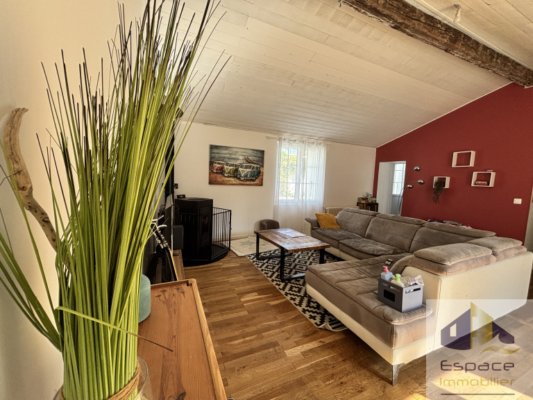 Idéalement située au centre du bourg de La Jarrie, cette maison rénovée avec charme d'environ 136 m² allie confort moderne et ambiance chaleureuse.