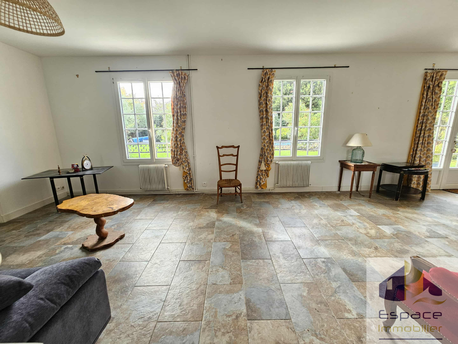 La maison a bénéficié de nombreux travaux récents (ouvertures, électricité, pompe à chaleur, isolation des combles), vous garantissant confort et sérénité. Le vaste salon-séjour de 42 m² offre un espace convivial et baigné de lumière, parfait pour recevoir vos proches. La cuisine séparée vous permettra de préparer vos repas en toute tranquillité.
